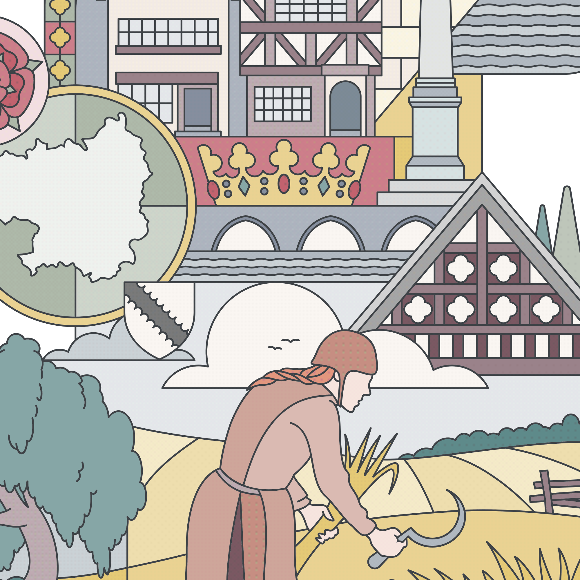 I decided to create a timeline, split into recognisable eras from Medieval to the present and future, scattered with key moments and Salford landmarks, whilst also illustrating everyday people of the time.